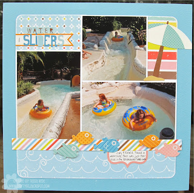 This summer we were lucky enough to take our first trip to Disney World! We had the best time and of course, I took hundreds of pictures! It will probably take me the rest of this year and some of next to scrap all of them- hee! I started printing pictures a day at a time so I won't get overwhelmed. When I'm done with the first day, I'll print the next one up! I've had so much fun so far but I'm still only on the first day- we spent it at Typhoon Lagoon! :) Here is one of the layouts I've made: